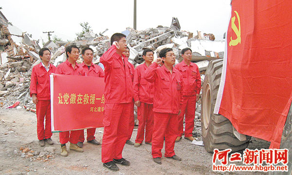 ■2008年汶川地震搶險(xiǎn)救災(zāi)現(xiàn)場舉行入黨儀式