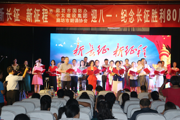 7月30日上午,由市國防教育辦公室、中太建設集團主辦,廊坊市朗誦協(xié)會承辦的“新長征新征程”迎八一·紀念長征勝利80周年詩歌朗誦會在中太大廈二樓報告廳舉行。來自市國防教育辦公室、市朗誦協(xié)會、中太建設集團及廊坊區(qū)域內(nèi)的朗誦愛好者齊聚一堂,以詩歌朗誦的形式共同迎接中國人民解放軍89歲生日,共同慶祝中國工農(nóng)紅軍長征勝利80周年。