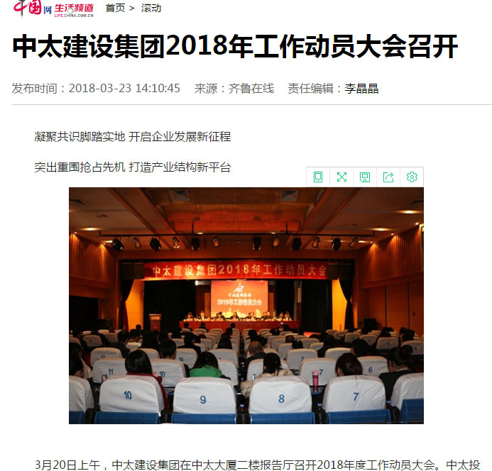 中國(guó)網(wǎng)報(bào)道了“中太建設(shè)集團(tuán)2018年工作動(dòng)員大會(huì)召開(kāi)”