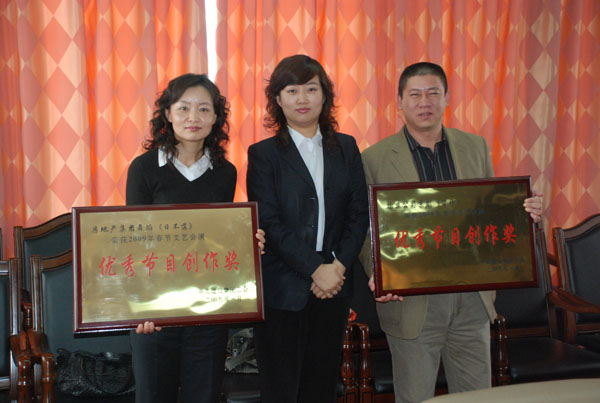 隨后,工會(huì)主席鐘崇鶴、副主席張娟分別為2009年春節(jié)職工文藝匯演受獎(jiǎng)單位和個(gè)人頒發(fā)了獎(jiǎng)牌和獎(jiǎng)杯。