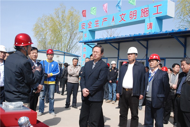 集團總裁張明禮(前右3)陪同趙世洪書記(前右4)在現場考察