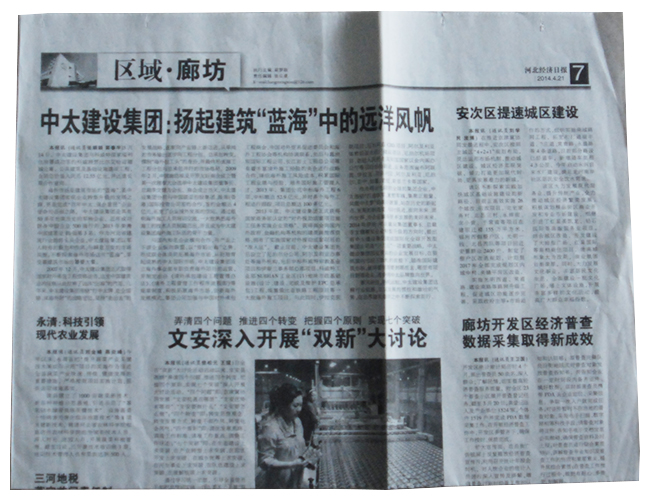 河北經濟日報報道了中太建設集團:揚起建筑“藍海”中的遠洋風帆
