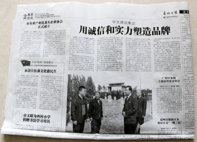 廊坊日?qǐng)?bào)報(bào)道了中太建設(shè)集團(tuán)用誠(chéng)信和實(shí)力塑造品牌