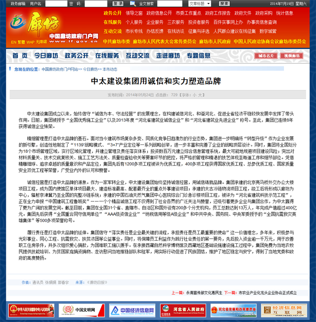 廊坊政府網(wǎng)中太建設(shè)集團用誠信和實力塑造品牌