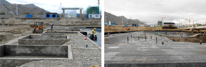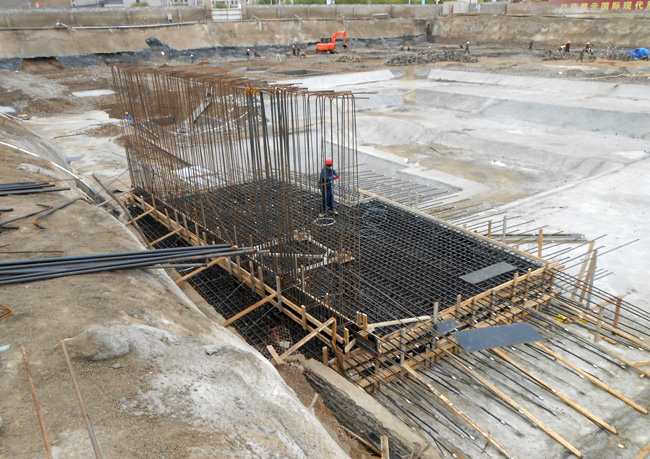 中太建設集團第十一工程局自4月份成立項目部以來,進行了大量精心的前期準備工作,包括員工生活區(qū)的搭建、施工隊伍的調度組織、工程設計圖紙的優(yōu)化落實、施工區(qū)外圍廣告墻的設計制作及安裝等。截至9月中旬,降水工程已開始全面降水、樁基工程也已全部施工完成,特別是4#-11#樓已完成獨立基礎和筏形基礎的土方開挖,其中4#-7#樓的混凝土墊層已澆筑、獨立基礎的磚胎膜正在砌筑。地下室防水工程也已開始施工,其中4#樓防水已大面積完成,6#、7#塔吊基礎已完成鋼筋綁扎,1#樓獨立基礎土方已開挖并已完成90%工程進度。